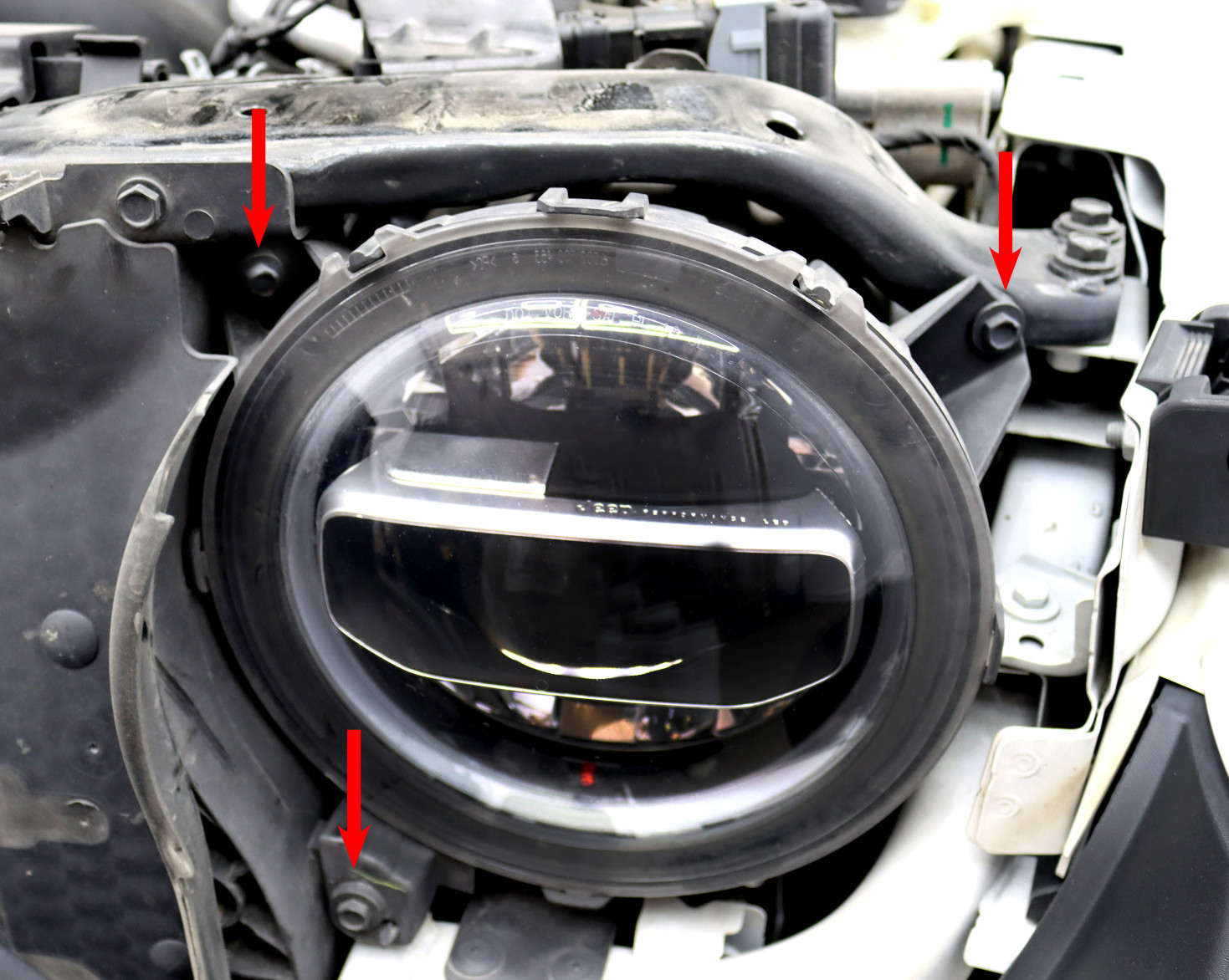 ③Unbolt Factory Headlights – Use Torx (T15/T20) to remove the retaining ring screws.