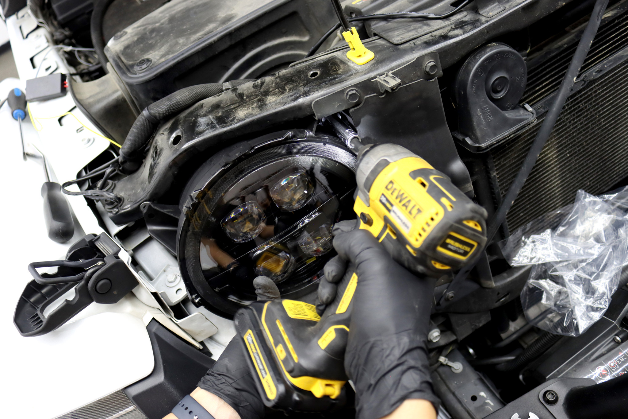 The JK uses a different mounting system but remains the most common 7-inch headlight swap among Jeep owners.