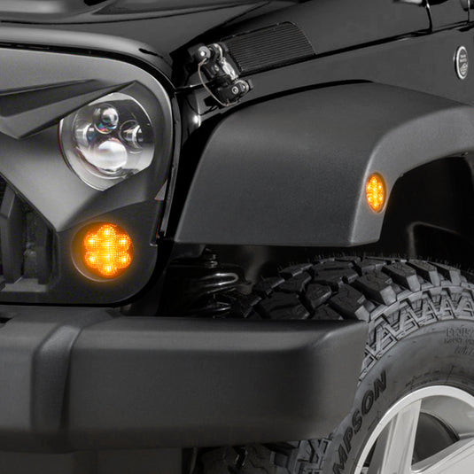 Smoked Amber LED Front Turn Signal Lights for Jeep Wrangler JK