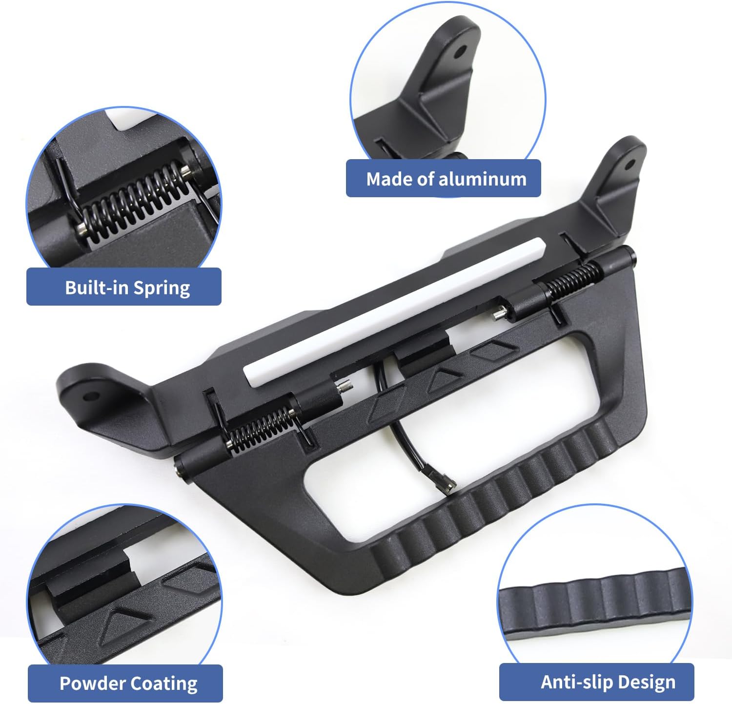 - Considerated Hidden Design: Built-in spring mechanism, the grab handle can be folded upwards when not in use to prevent head collision.