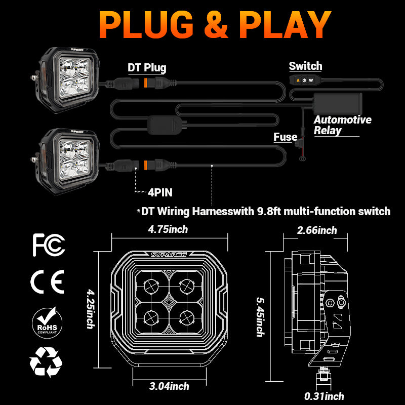 A: The Hyper 5 comes with a multifunction switch and a 9.8-foot (approximately 3-meter) wiring harness, allowing easy installation on the bumper, A-pillar, roof, and more.