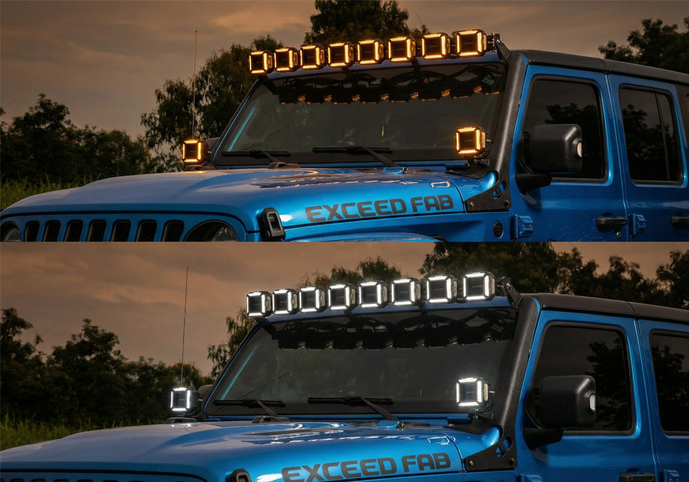 Dual-color daytime running lights improve visibility in varying environments—white for daily driving, amber for dust, fog, rain, and snow.
