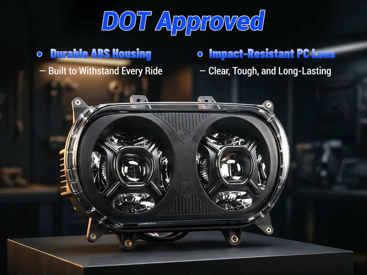 Street-legal lighting with a rugged ABS housing and impact-resistant PC lens built for long-term performance.