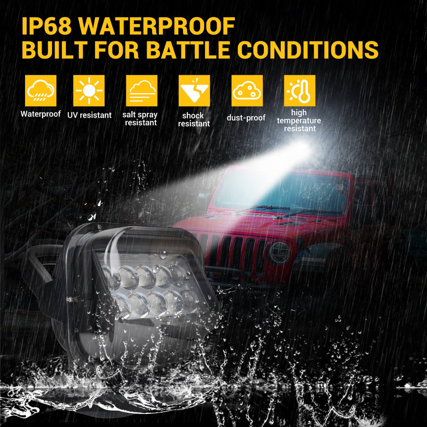 Built to withstand harsh conditions, this LED spotlight features IP68 waterproofing, UV resistance, salt spray protection, shock resistance, high dust-proofing, and temperature resilience, ensuring reliable performance in extreme environments.