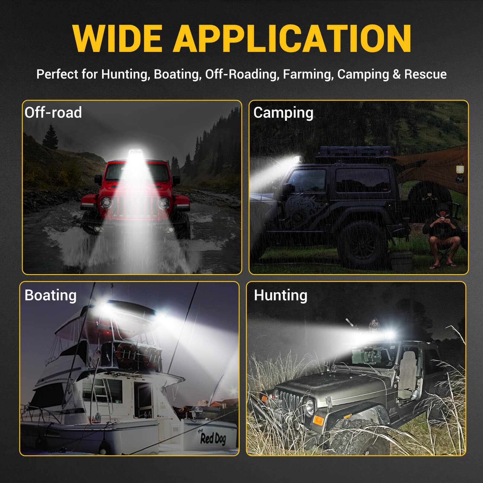 Designed for off-road, boating, camping, hunting, farming, and rescue, this LED searchlight provides stable, bright illumination across diverse environments. Durable construction ensures reliable performance in all outdoor conditions.