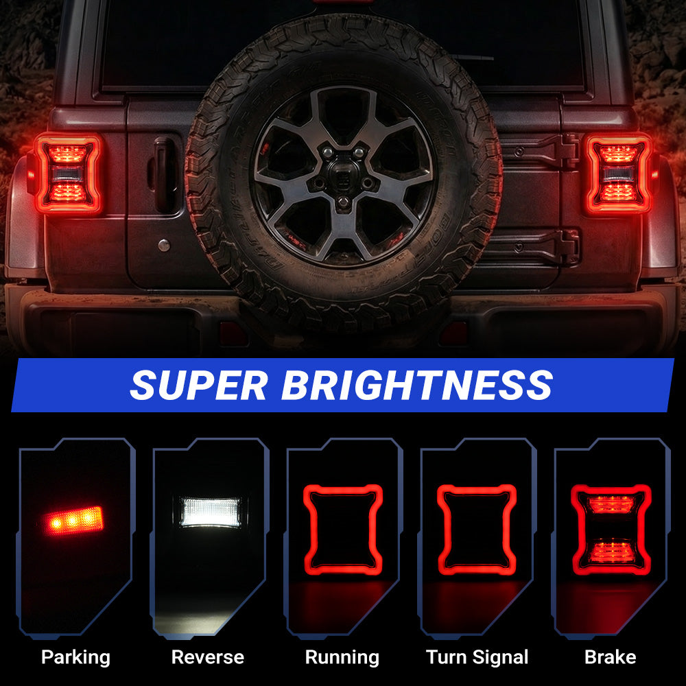 A: The taillights feature the latest "C-shape" 3D light-guide technology. When lit, the illumination is perfectly even and modern, eliminating the grainy "dot" look of traditional LEDs and giving your JL a premium aesthetic.