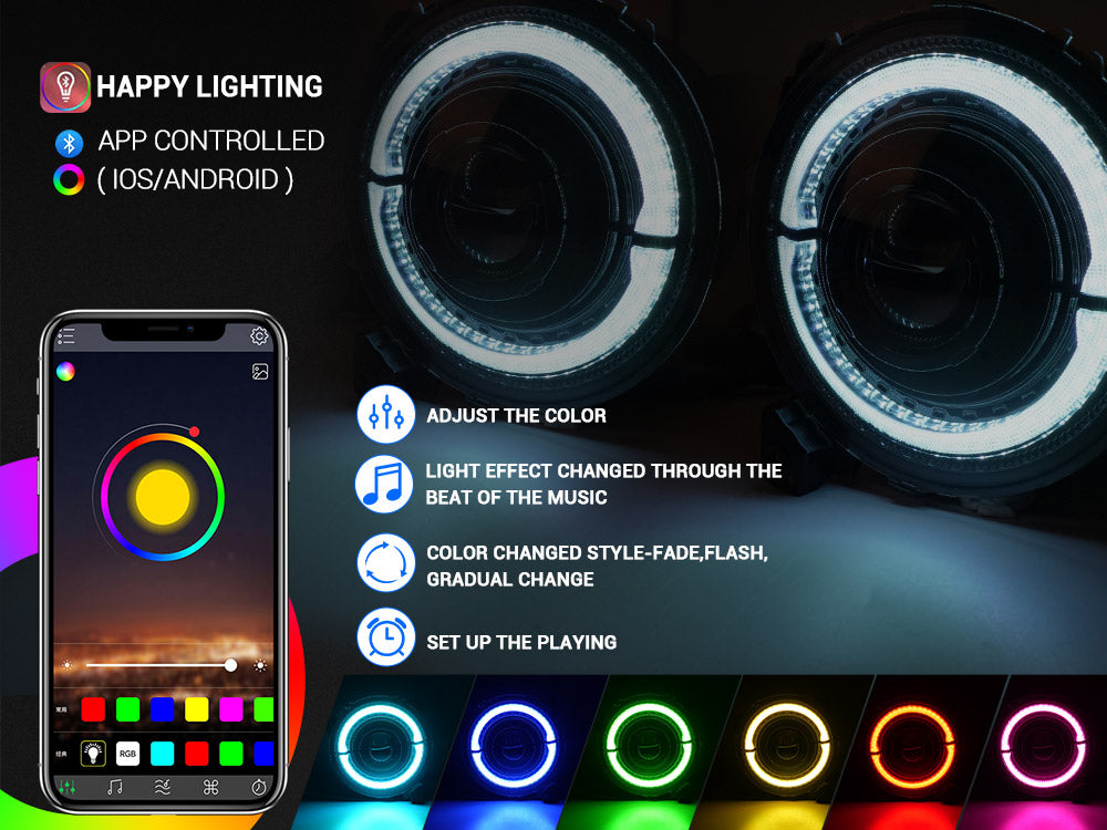 RGB-W Halo Headlights for 2018-2025 Jeep Wrangler & Gladiator JT