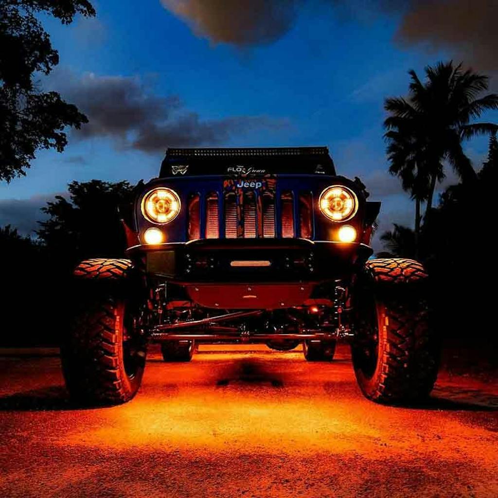 Los faros RGBW de 7 pulgadas brillan con alta potencia. Utilice la aplicación para controlar millones de colores y obtener una mayor salida de brillo y un haz de luz más enfocado. Hecho de chips LED de alta calidad y lentes de proyector, mantiene el faro como nuevo durante todo el año.