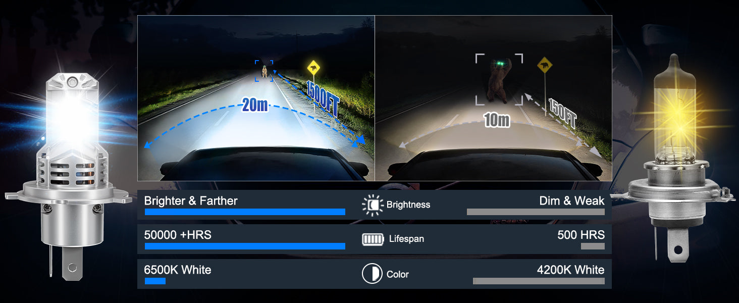 Upgrade to our advanced LED headlights and eliminate dangerous dark spots with precision-engineered optics. The optimized beam pattern delivers: