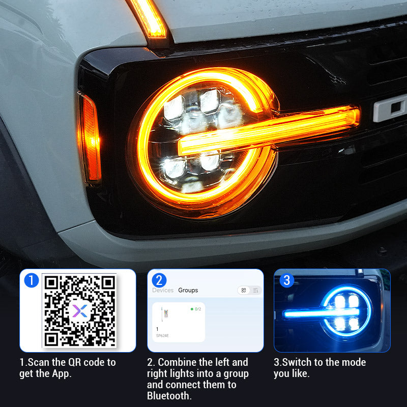 Four LED lights make my Bronco stand out, and I like that even with the RGB function, the Hi/low beam brightness always bright.
