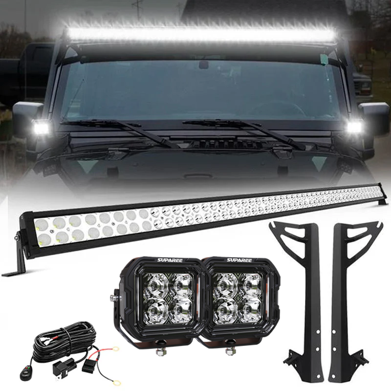52" Light Bar & 2 Pod lights & All Brackets Kit for 2007-2018 Jeep Wrangler JK
