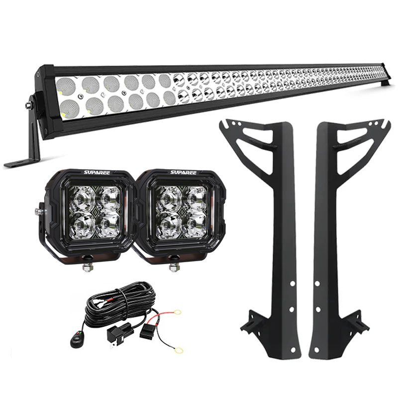 Easy Upgrade. Gain the lighting you need without drilling or modifying your Wrangler (custom bolt-on mounting brackets). Our light bars and pods feature high-intensity LEDs that output 30,000 lumens. The rugged construction of our light bars is perfect for the roughest terrain. Featuring a die-cast aluminum housing with a polycarbonate lens, made for the muddiest trails.