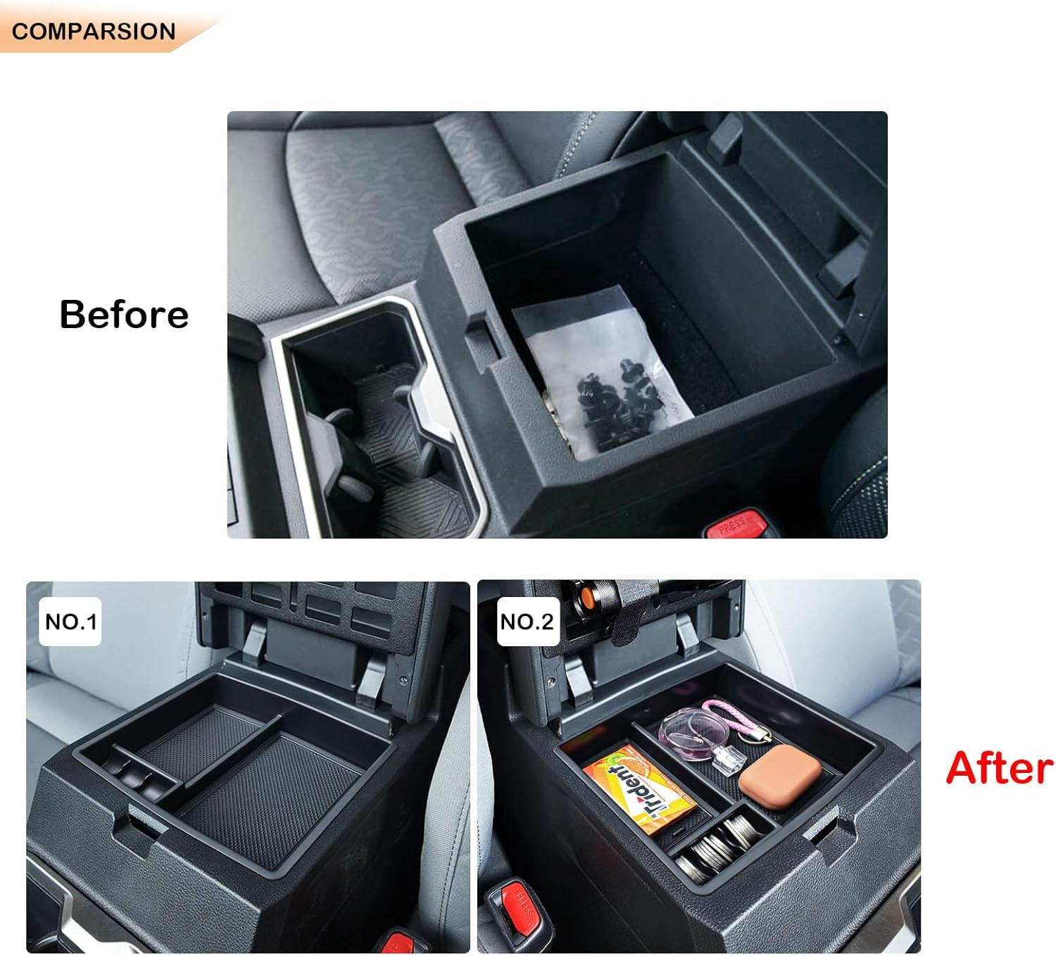 - PERFECTLY FIT & EASY INSTALLATION: Original size of 2024 2025 Toyota Tacoma design, 100% FIT 2024 2025 Toyota Tacoma, install directly, no need to modify, Just few seconds, your Tacoma center console will be more organized.