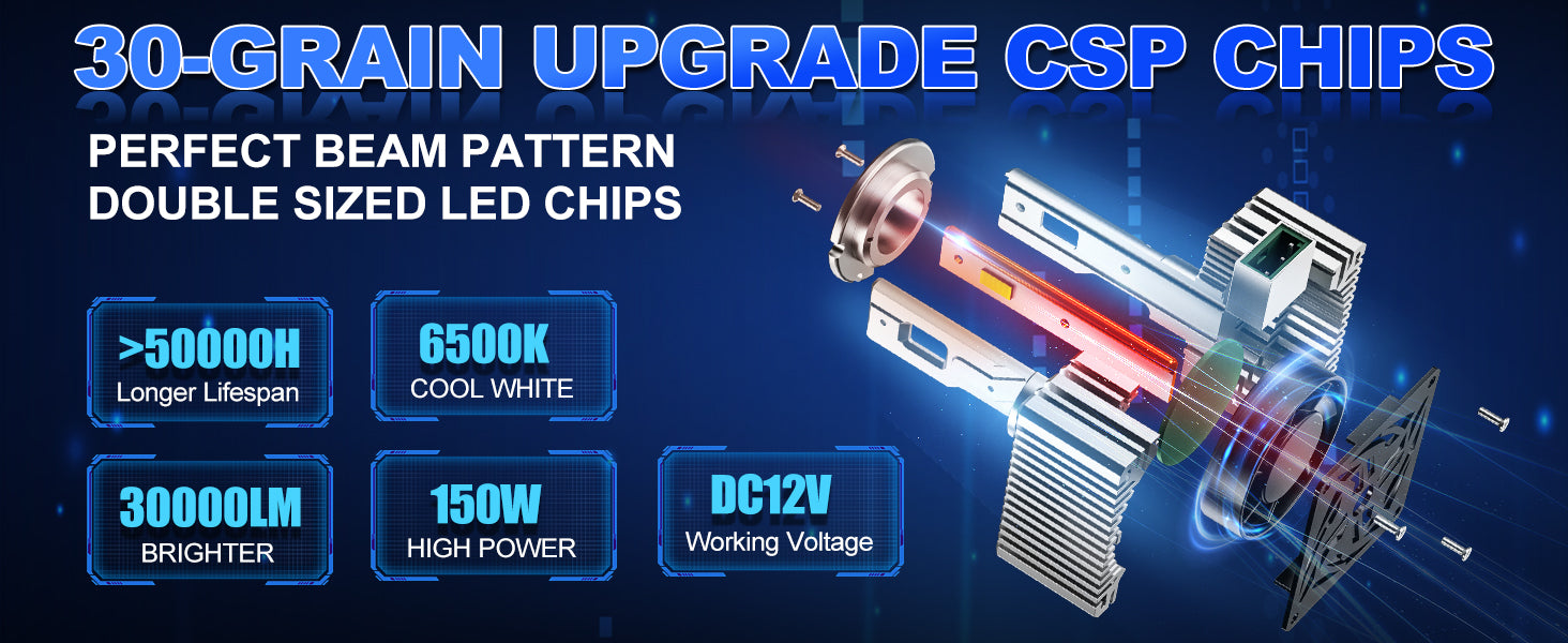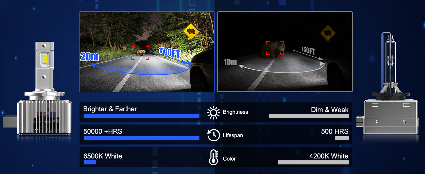 600% brighter than the HID bulb. Can reach 1500FT ultra-long irradiation distance and 20m wide field of view, which the driving experience is better and safer.