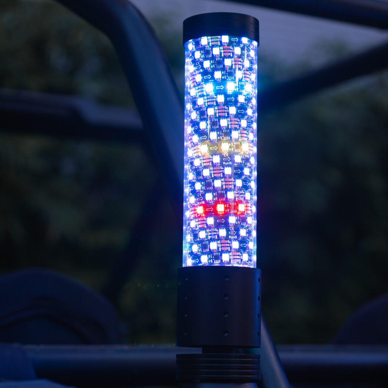 - RGBW LED delivers a full spectrum of colors and dynamic lighting effects.