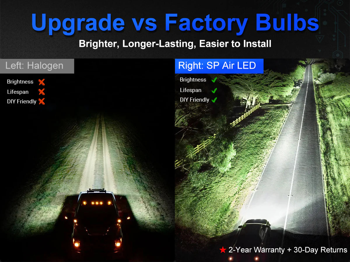 No tools. No guesswork. Just a perfect 1:1 halogen fit that snaps into place. From the driveway to the highway—you’re ready in 5 minutes.