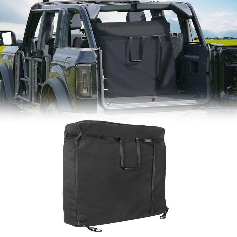 Eric L. An affordable and practical solution for storing your Bronco top, the bag attaches behind the rear seat, freeing up space in the cargo area for additional gear or supplies.