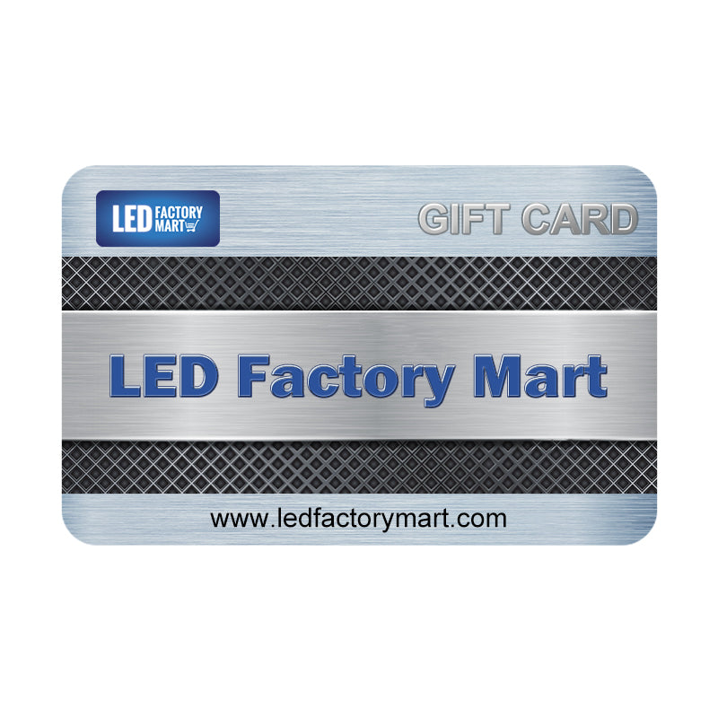 You'll never go wrong if you surprise the enthusiast in your life with a LED Factory Mart E-Gift Card. You can purchase and redeem an E-Gift Card online or over the phone, from the comfort of your home or office, delivered with ease directly to the recipient's email inbox.