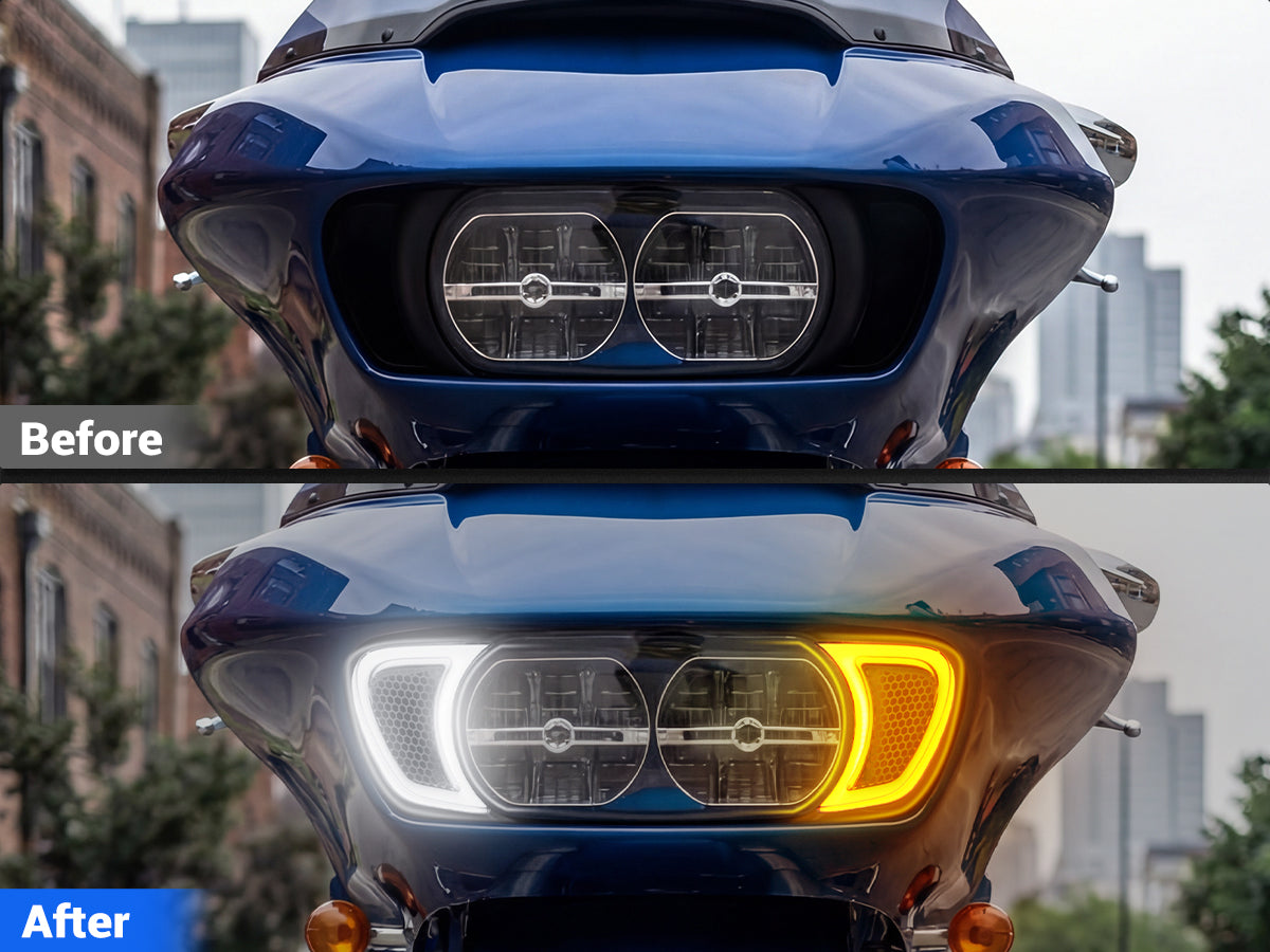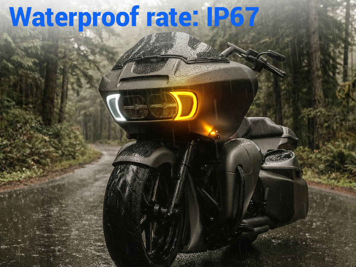 Switch between crisp white running light and bold amber turn signal—one light handles both style and safety for your Road Glide.