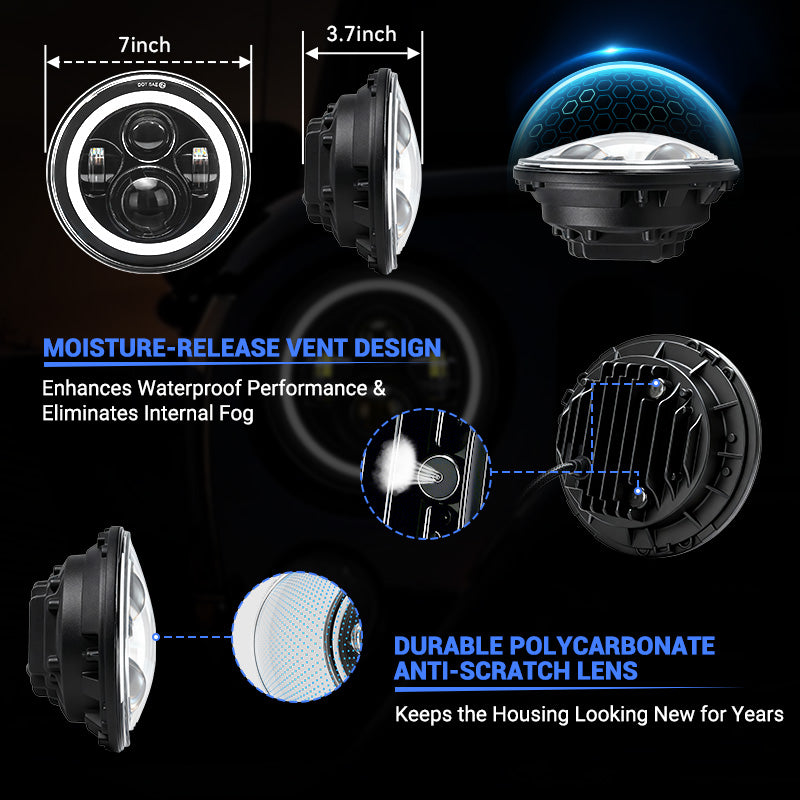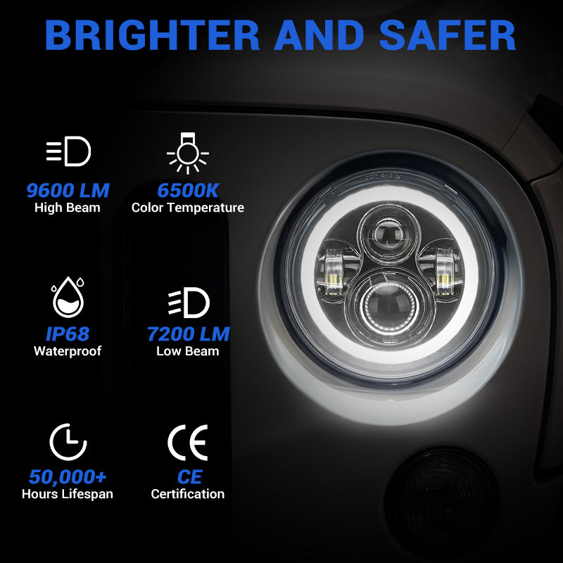Built for serious off-roaders and daily drivers alike, these headlights are fully sealed with an IP68 waterproof rating, making them resistant to rain, mud, and dust. They perform flawlessly from -40°F to 185°F, making them ideal for desert heat, snowy trails, or monsoon storms.