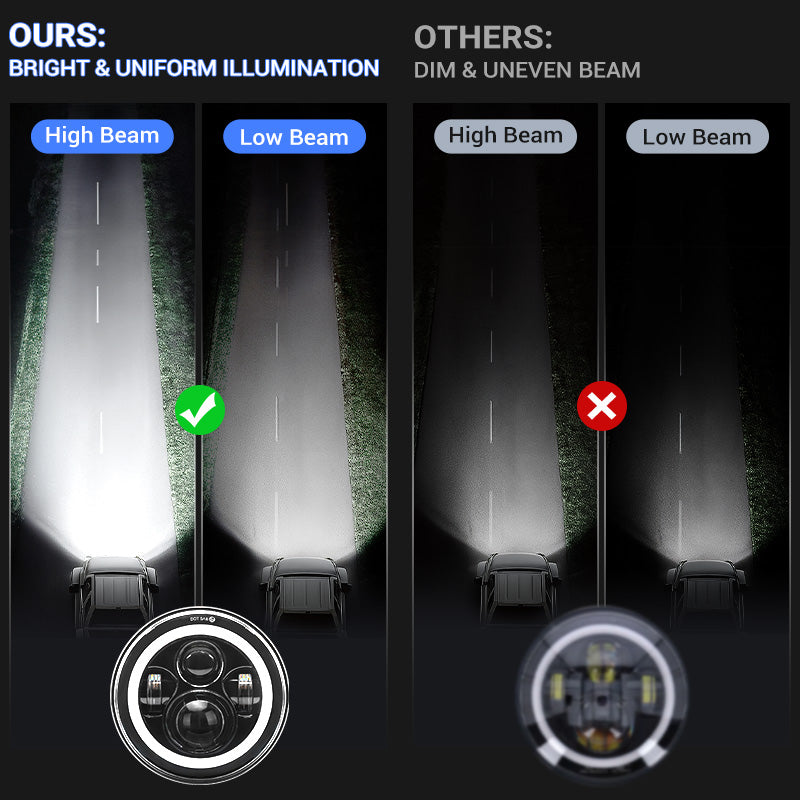 Surpassing standard headlights, ours projects high and low beams farther and wider, lighting up every corner of the road. Enjoy superior visibility, extended coverage, and complete control on every drive.