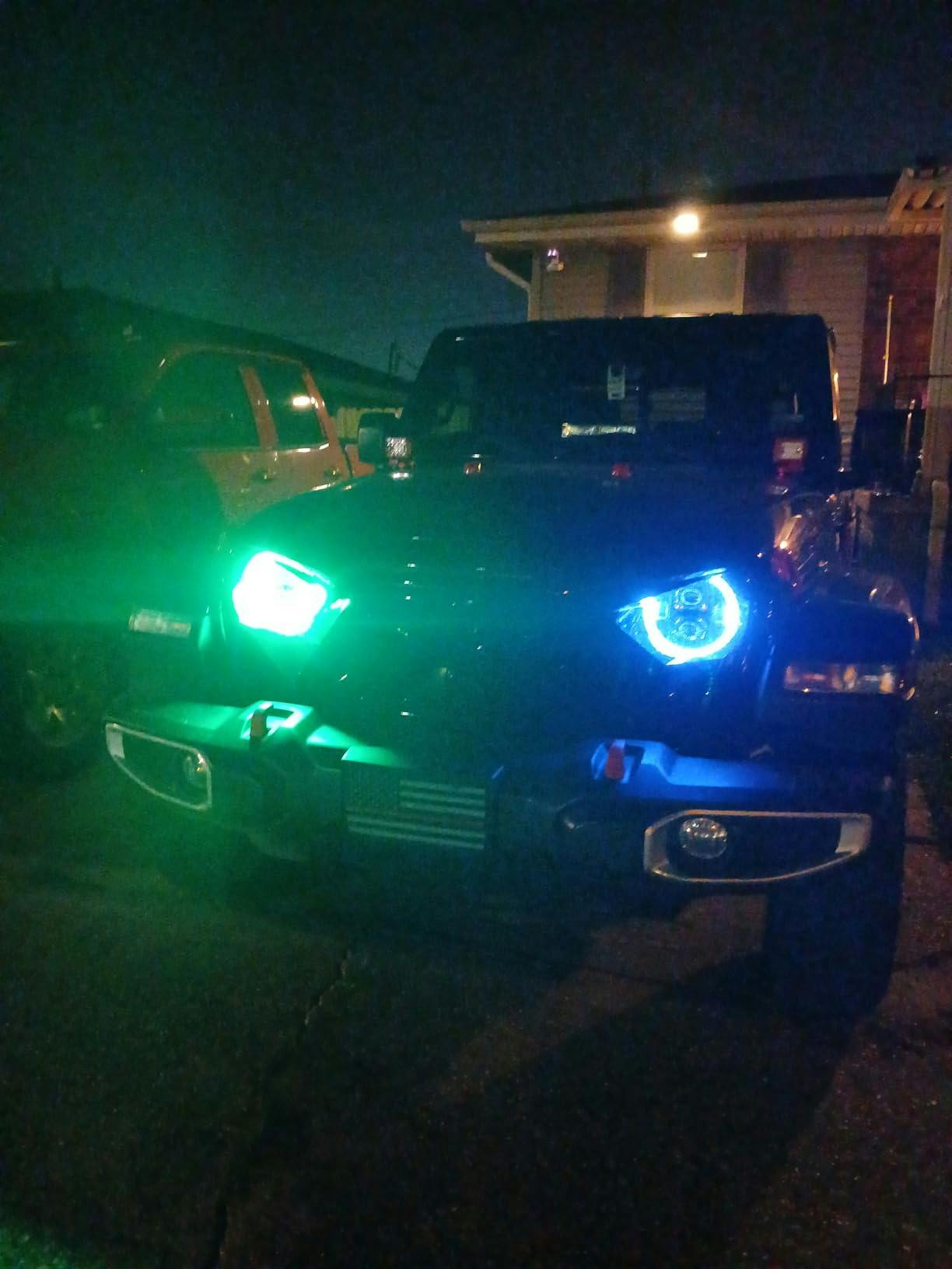 We got these as a surprise for our daughter. They were very easy to install. Multi colors with a remote. They fit her 2019 wrangler perfect and easy to wire. The headlights are very bright as they light up signs at night and helps me see them better. Quality is top tier.