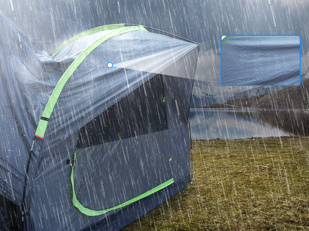 Full rain cover with sealed seams and zippered storm flaps on doors, windows and vents for privacy and ultimate rain and bug protection.The bottom of the tent has a waterproof layer to prevent rainwater from seeping in.